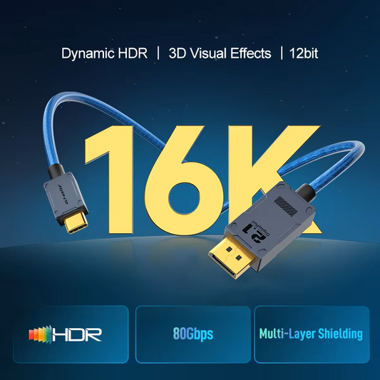 16K Mini DisplayPort to DisplayPort 2.1 Cable 8K 120Hz 4K 240Hz 80Gbps Bi-Directional DP to Mini DP for Gaming Laptop MacBook