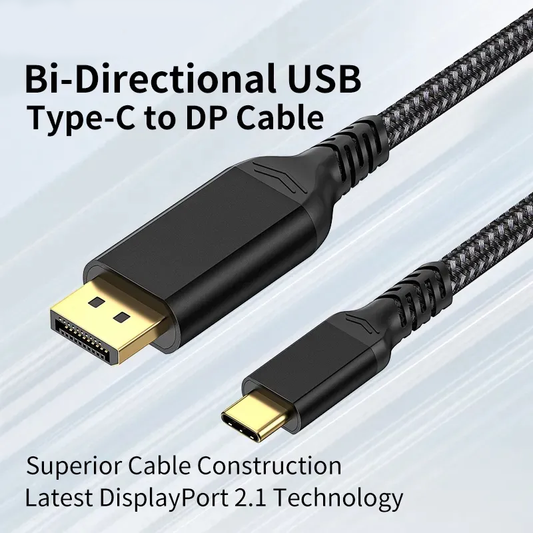 Bidirectional Type C to Display Port Cable 16K 30Hz 8K 60Hz Phone to Monitor USB C to DP 2.1 Cord 2m 6.6ft Braided Adapter Cable